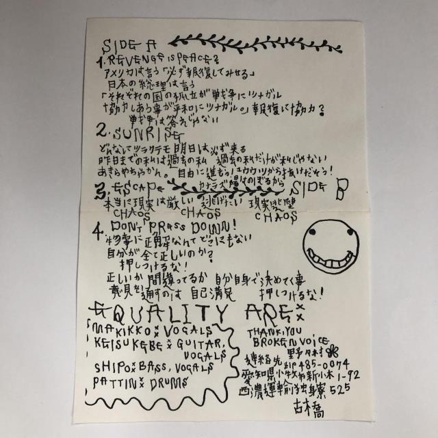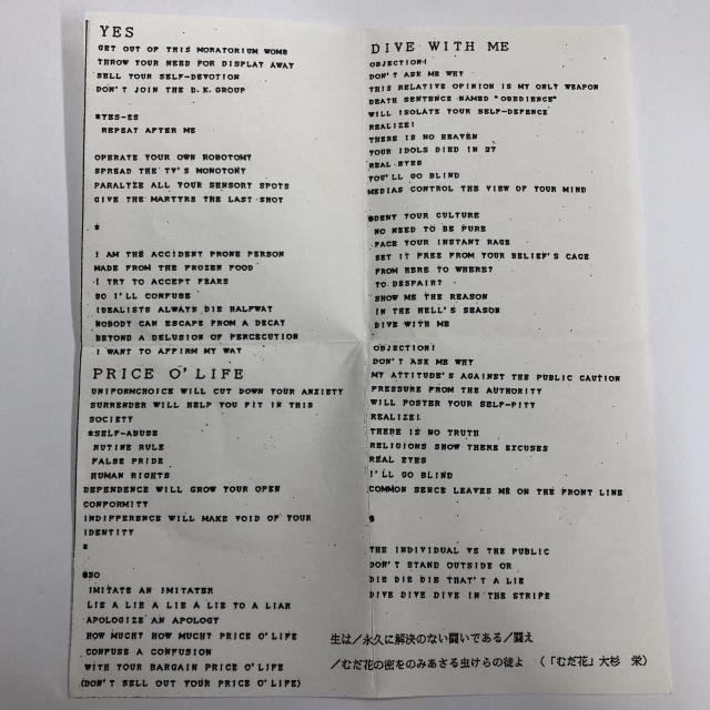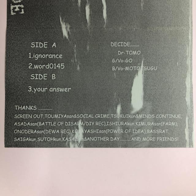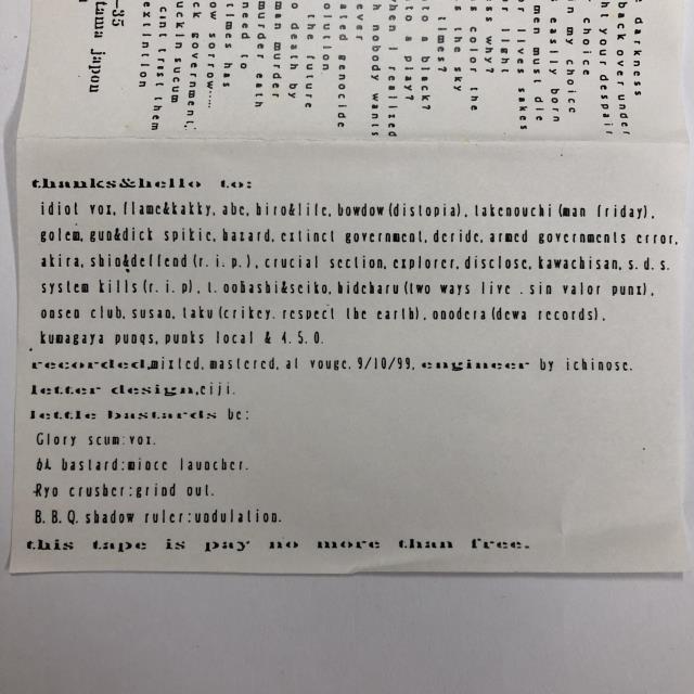 【備考】ミュージックテープ/1st DEMO/INSERT 神奈川厚木NOISE CORE