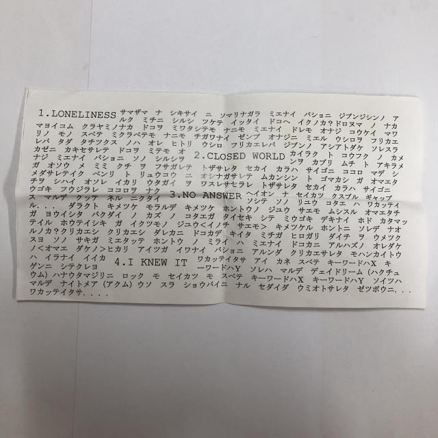 【備考】限定盤/CASSETTE/'84:CONDOME CASSEX/INSERT